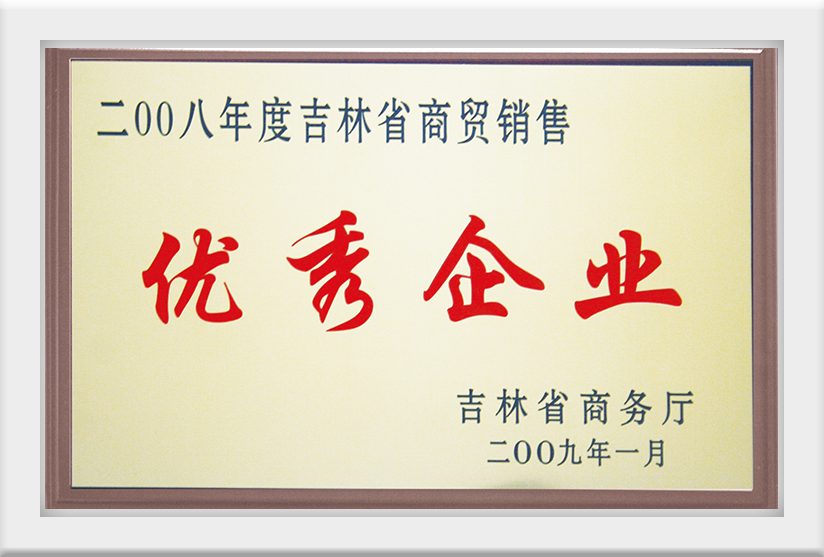 2009年1月榮獲二零零八年度吉林省商貿(mào)銷(xiāo)售優(yōu)秀企業(yè)