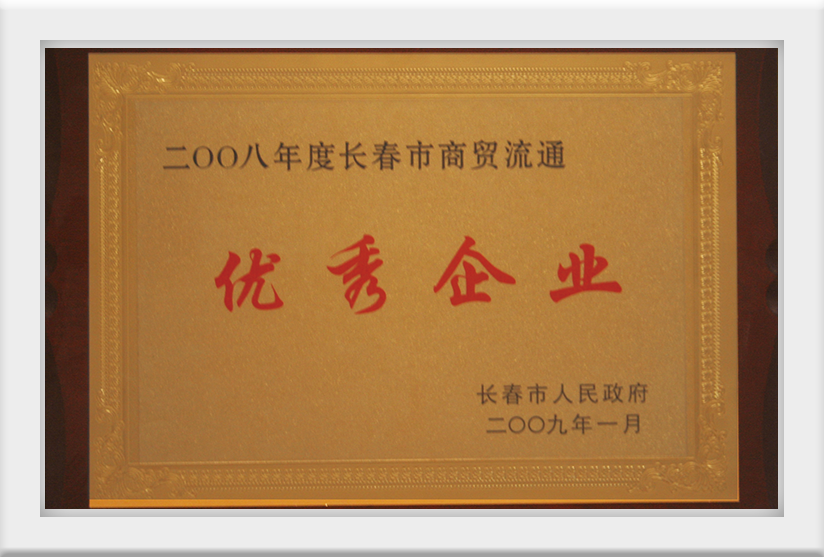2009年1月榮獲二零零八年度長(zhǎng)春市商貿(mào)流通優(yōu)秀企業(yè)